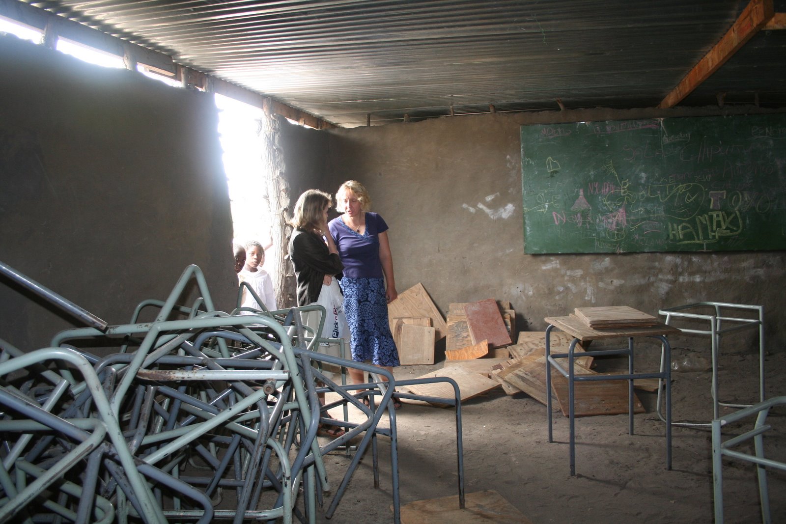 In the USA there is a volunteer association called the Peace Corps, rather like VSO. Usually young people take a year or two out of college before they start work and volunteer as teachers or other aid workers. Mubiza had a Peace Corps volunteer two years ago and he had the class under the tree! He loved the school so much that when he went home to the states his family and various relatives collected enough money to build a whole new classroom block – so no more teaching under the tree.